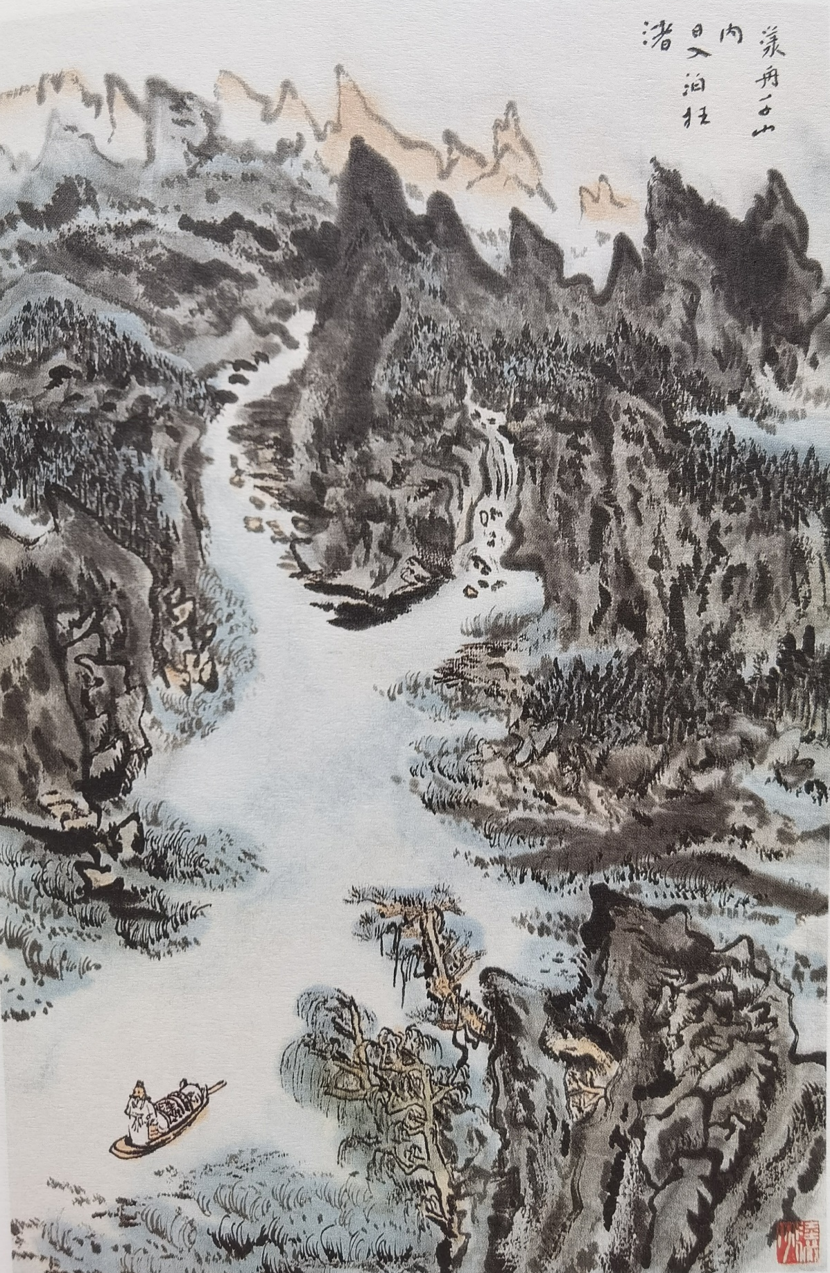 图:陆俨少《杜甫诗意图册》之《漾舟千山内,日入泊枉渚》